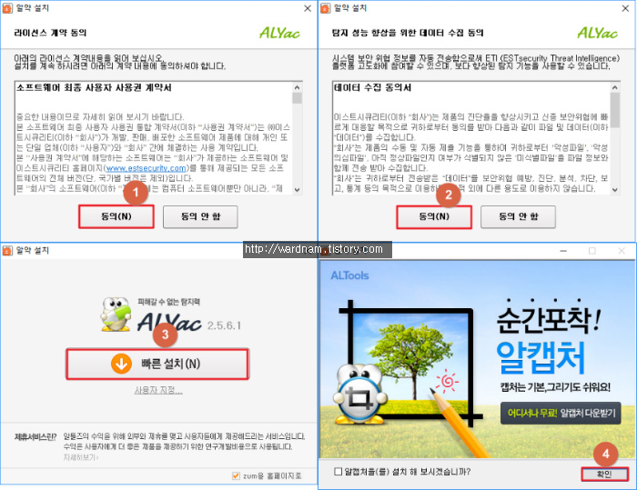 ▲ 순서대로 동의한 후 확인하면 설치가 완료된다.