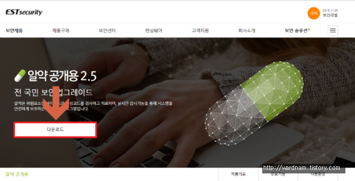 알약 공식 홈페이지 다운로드 : https://www.estsecurity.com/product/alyac