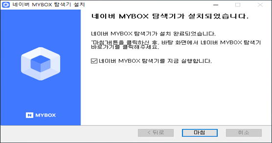 네이버 MYBOX 탐색기 설치가 모두 완료되면 마침을 클릭해 설치를 마무리 시킵니다.