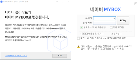 - 기존 네이버 클라우드에서 네이버 마이박스로 개편되었습니다.