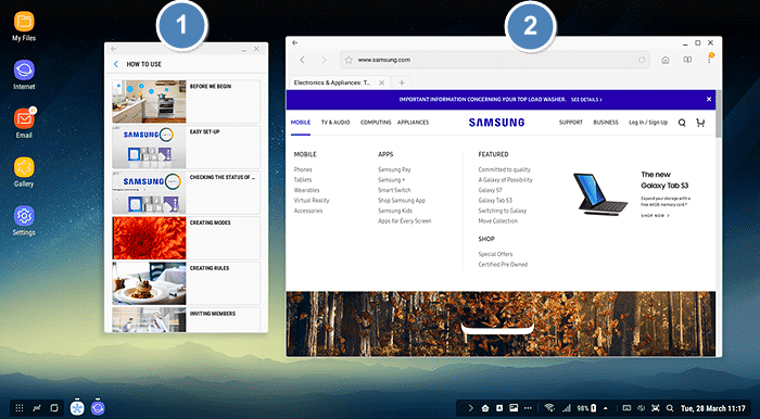 9. Samsung DeX 창 유형은 크게 두 가지로 분류됩니다.