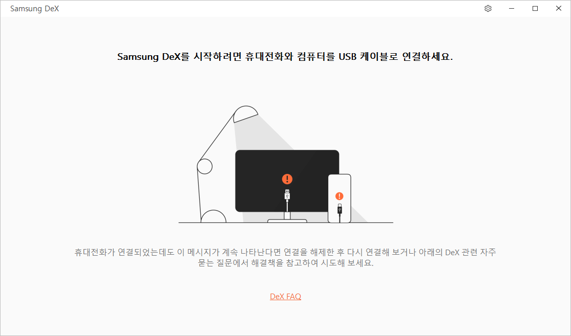 5. 이제 Samsung Dex와 기기를 USB 케이블로 연결합니다.